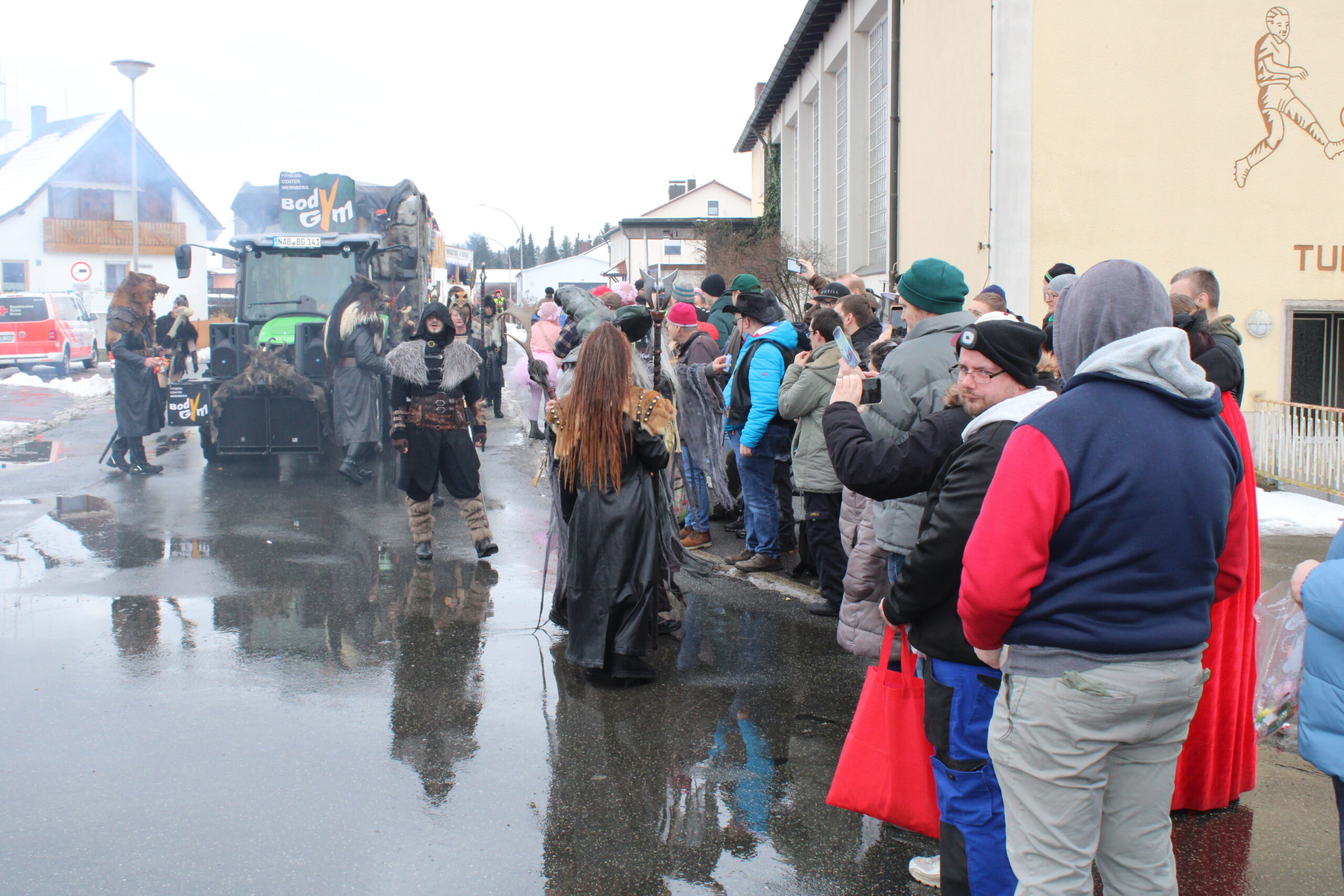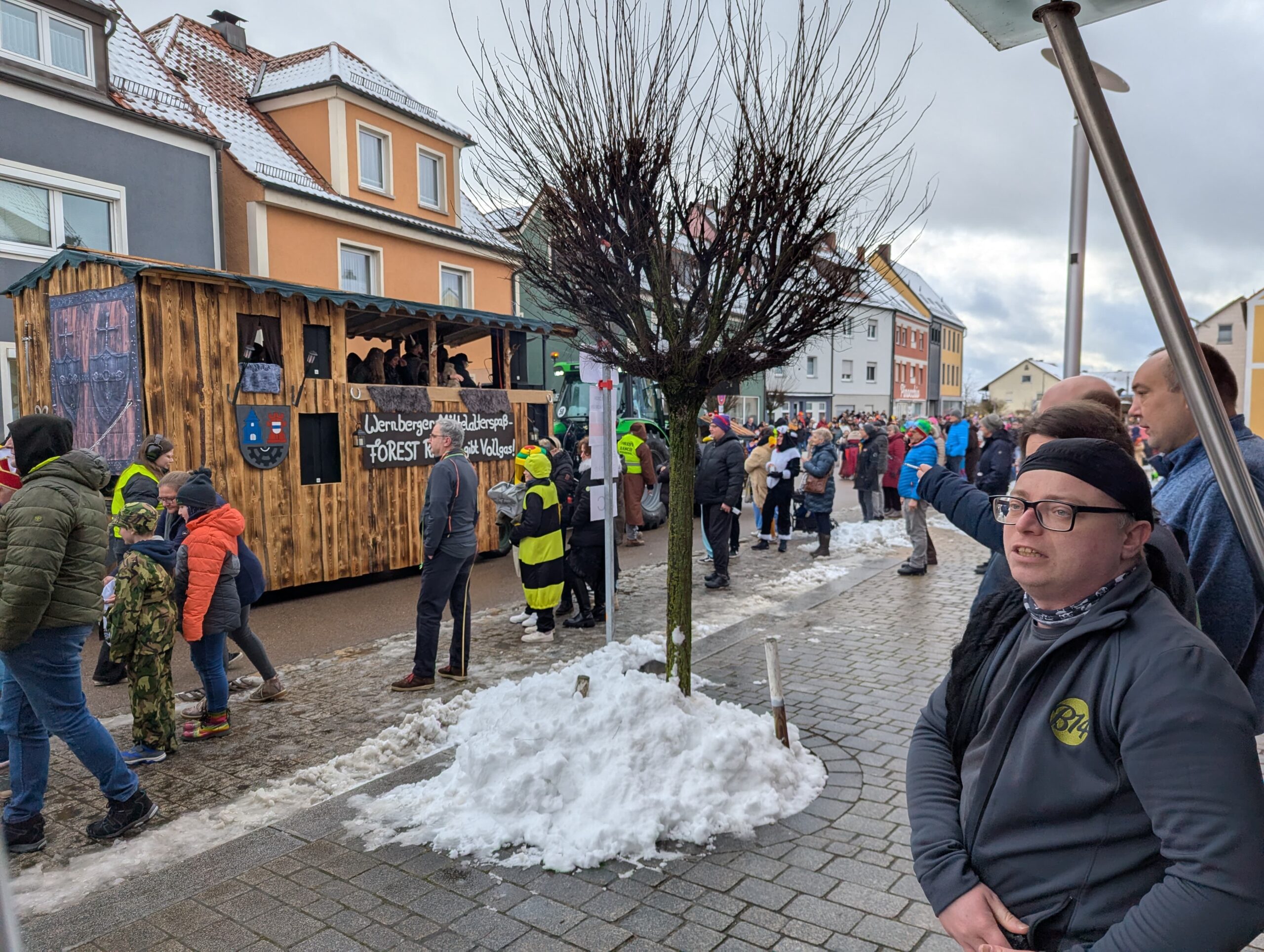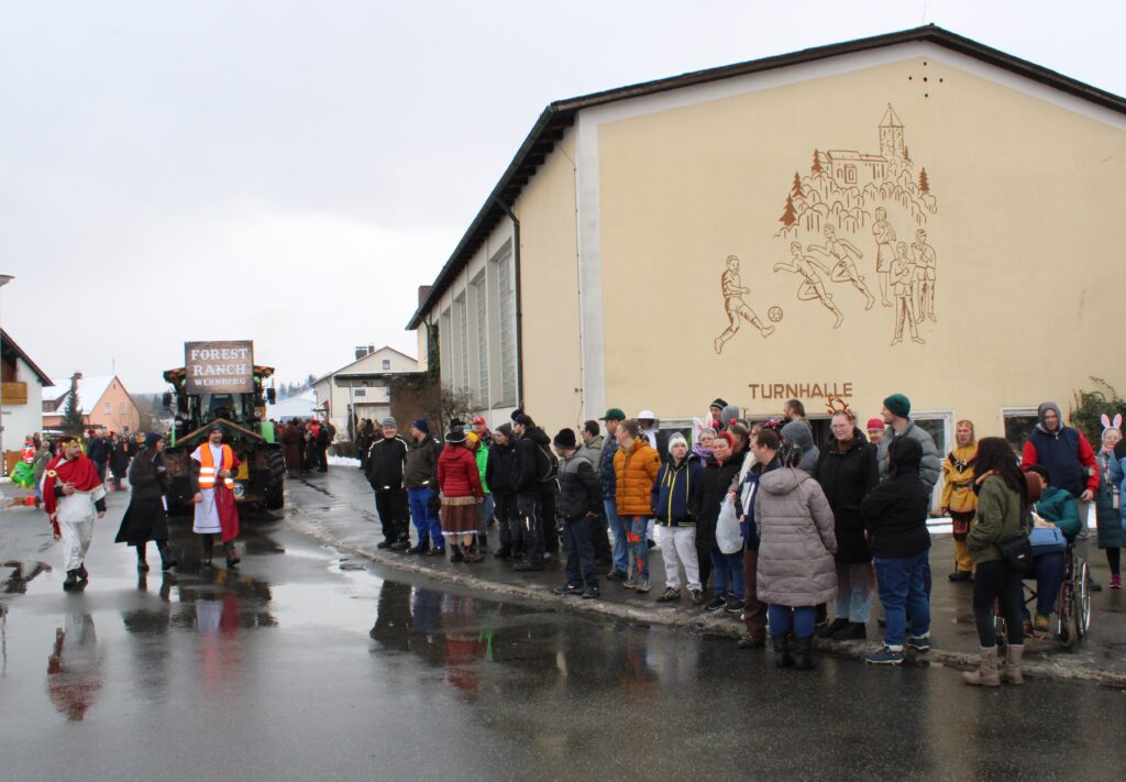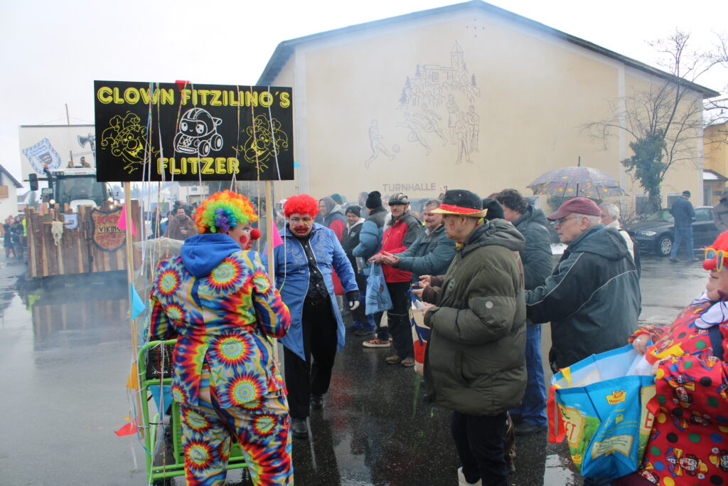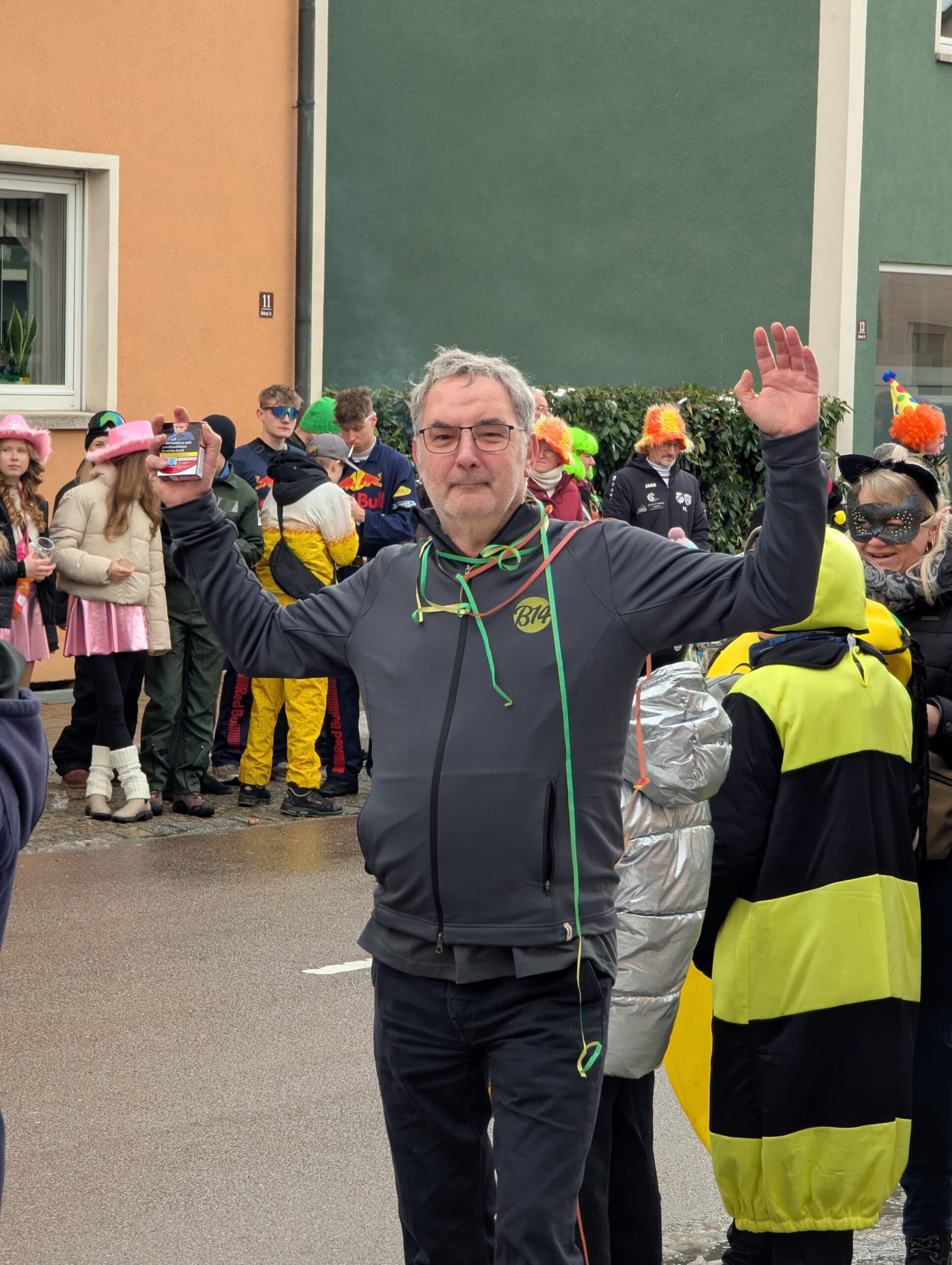 Dann ging es endlich los. Begleitet von Musik und Applaus setzte sich der Zug in Bewegung und verwandelte die Straße in ein buntes Faschingstreiben. Unsere Teilnehmenden waren mittendrin. Auch unser Musikcafé B14 bestaunte den Faschingszug im Ortskern von Wernberg.