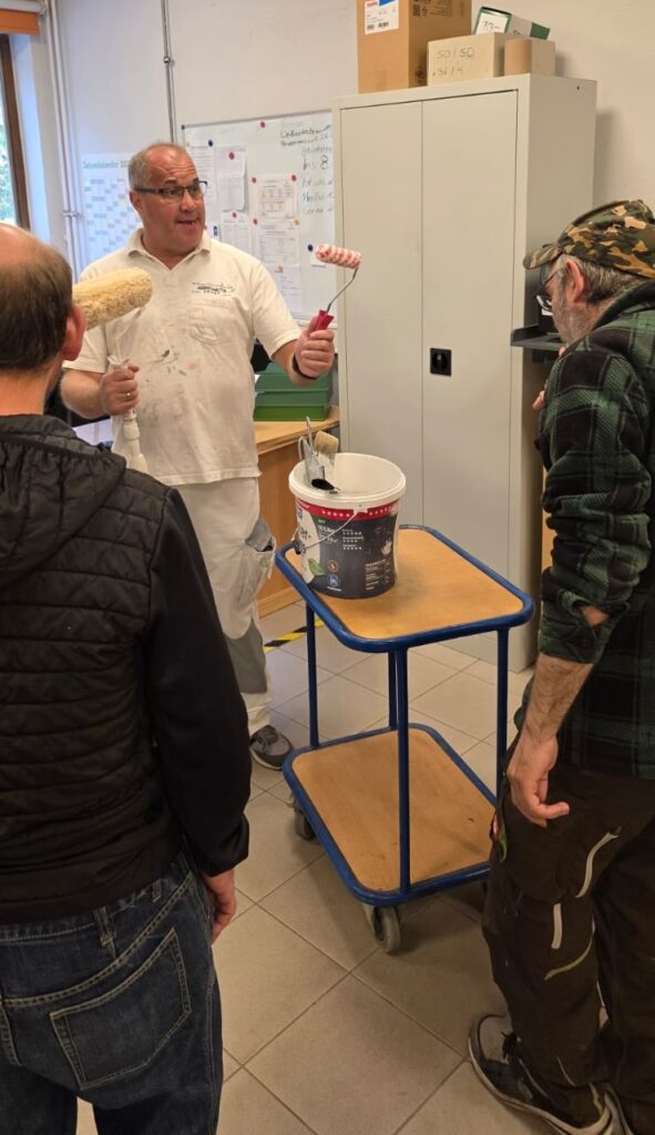 Dieses Projekt bietet interessierten Beschäftigten die Möglichkeit, sich im Bereich Malerarbeiten auszuprobieren und neue handwerkliche Fähigkeiten zu erlernen.