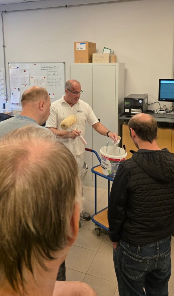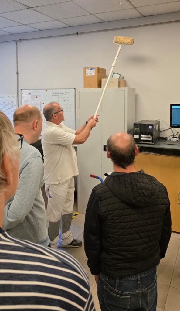 Dabei erklärte er, welche Aufgaben in der Malergruppe auf die Teilnehmenden zukommen und gab einen anschaulichen Einblick in den Beruf des Malers – zum Beispiel das Streichen von Wänden oder den Umgang mit verschiedenen Werkzeugen.